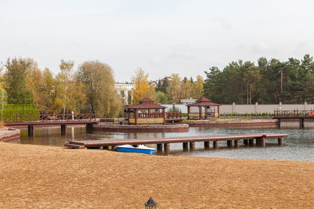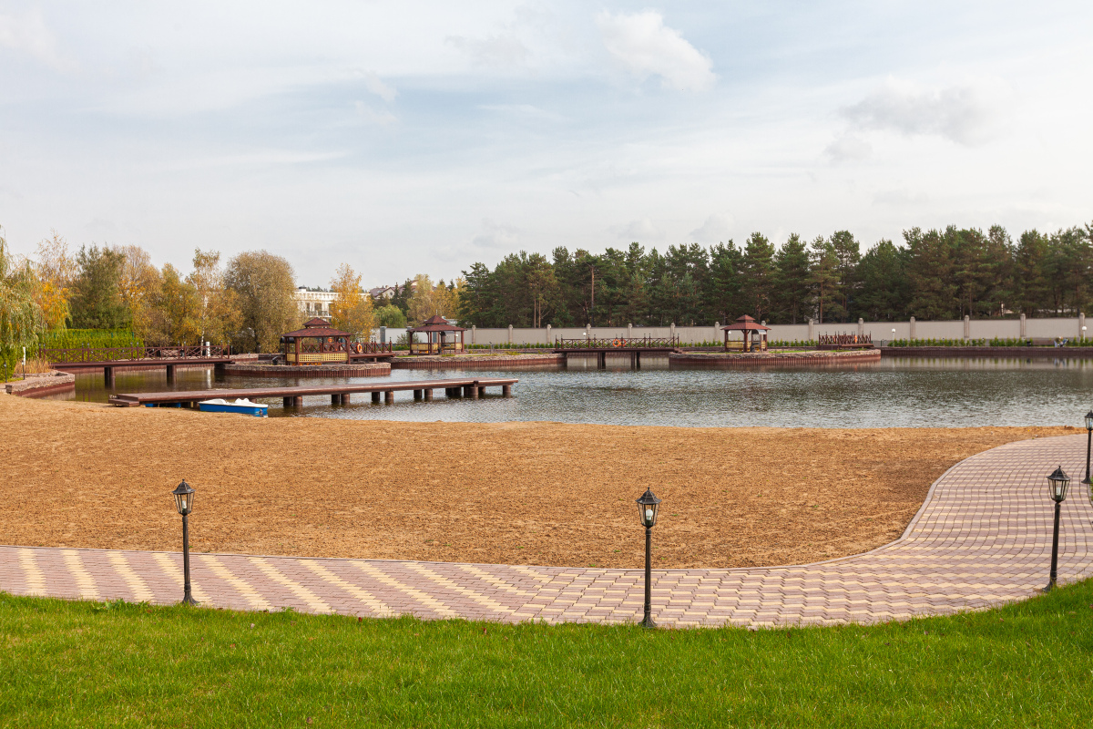 Коттеджный поселок Никольская слобода – классический элитный проект в 9 км от Москвы по Новой Риге. Он окружен заповедной лесной зоной, где можно наслаждаться прогулками вдоль кристально чистых озер или устраивать велопрогулки. Комплекс занимает территорию 100 га, на которой спланированы великолепные особняки, парковые ансамбли, теннисные корты, детские площадки и ресторан у воды.